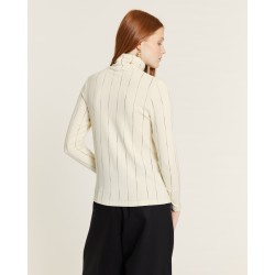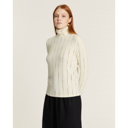 Top cuello alto microrayas, mangas largas rectas, a la altura de la cadera.