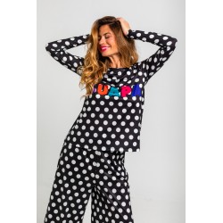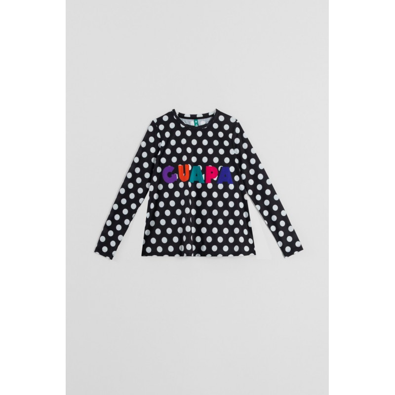 Camiseta elástica de estampado vectorial con corte acampanado, manga larga y cuello redondo con posicional de la colección. - 95% Poliéster y 5% Elastán. - Lavar a máquina en agua fría. No usar blanqueador. No usar secadora. Secar colgado a la sombra. Planchado a temperatura baja, por debajo de 100 ºC. Planchar del revés. No dejar la plancha parada sobre la prenda. Lavar con colores similares. - TALLA XS: Medida de pecho 42 cm, medida del bajo 63 cm y largo del cuerpo 60,50 cm. TALLA S: Medida de pecho 44 cm, medida del bajo 65 cm y largo del cuerpo 62 cm. TALLA M: Medida de pecho 46 cm, medida del bajo 67 cm y largo del cuerpo 63,5 cm. TALLA L: Medida de pecho 48 cm, medida del bajo 69 cm y largo del cuerpo 65 cm. TALLA XL: Medida de pecho 50 cm, medida del bajo 69 cm y largo del cuerpo 66,5 cm. TALLA XXL: Medida de pecho 52 cm, medida del bajo 71 cm y largo del cuerpo 68 cm. Las medidas de las prendas pueden presentar pequeñas variaciones debido al proceso de producción de hasta 2 cm.