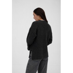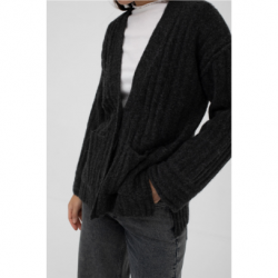 Cárdigan de punto en canalé con detalle de puños de canalé horizontal doblados hacia el exterior. Abertura frontal con botones y aberturas en los costados. Cuenta con dos bolsillos frontales. Combina con los complementos Bukon y Busan.