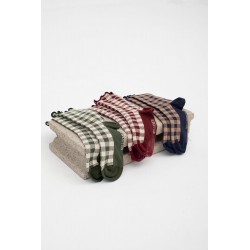 Calcetines vichy de media caña con acabado fruncido en la parte superior.