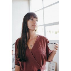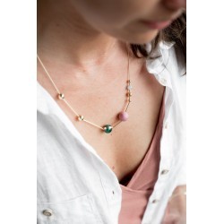 Collar de 54cm de largo, fabricado con minerales naturales y latón chapado en oro de 18kt, libre de níquel y plomo.