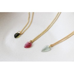 Cada pieza es única y te invitamos a elegir tu hojita entre las disponibles en esta edición limitada: elige tu Hoja de Turmalina teniendo en cuenta el material que quieres para la cadena y nosotros la prepararemos especialmente para ti en nuestro taller.