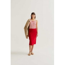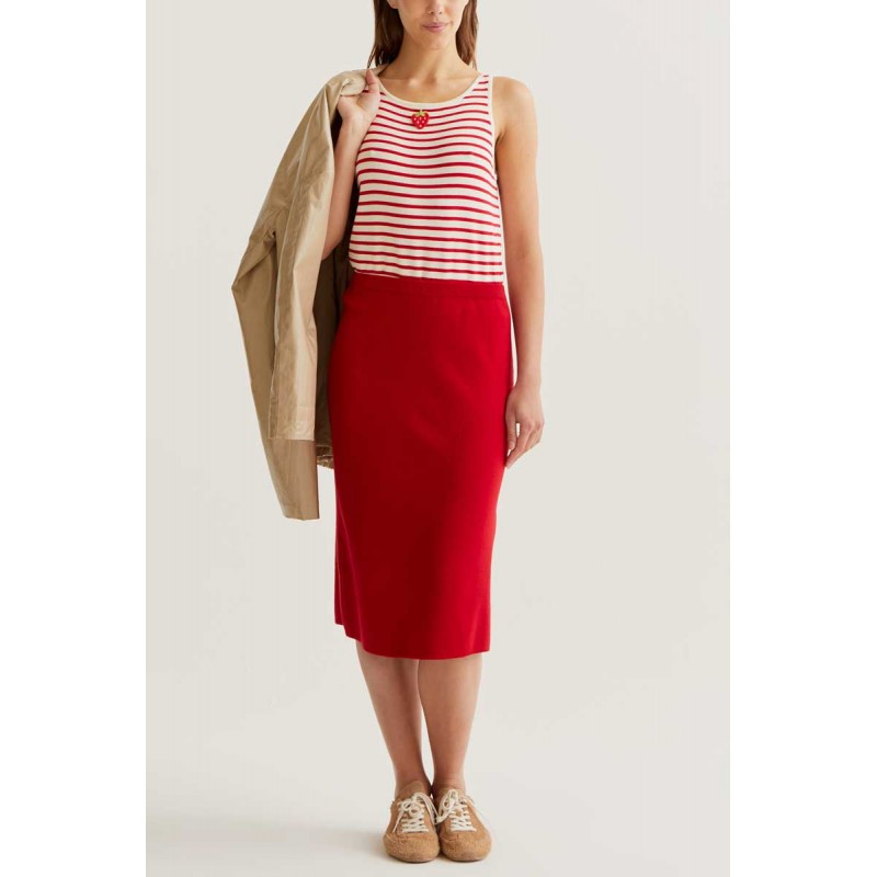 Falda midi con tejido punto de color rojo.