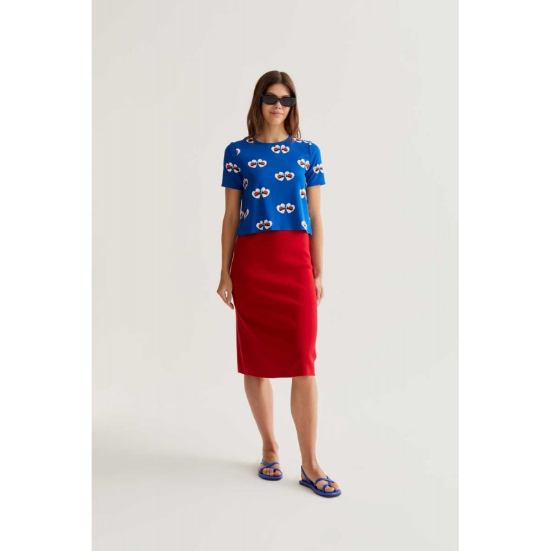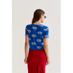 Camiseta con tejido jersey con estampado coccinella. Cuello redondo y manga corta. La modelo mide 177 cm y lleva la talla S.