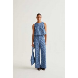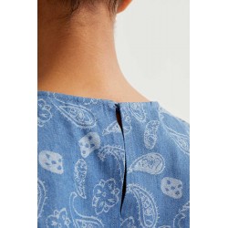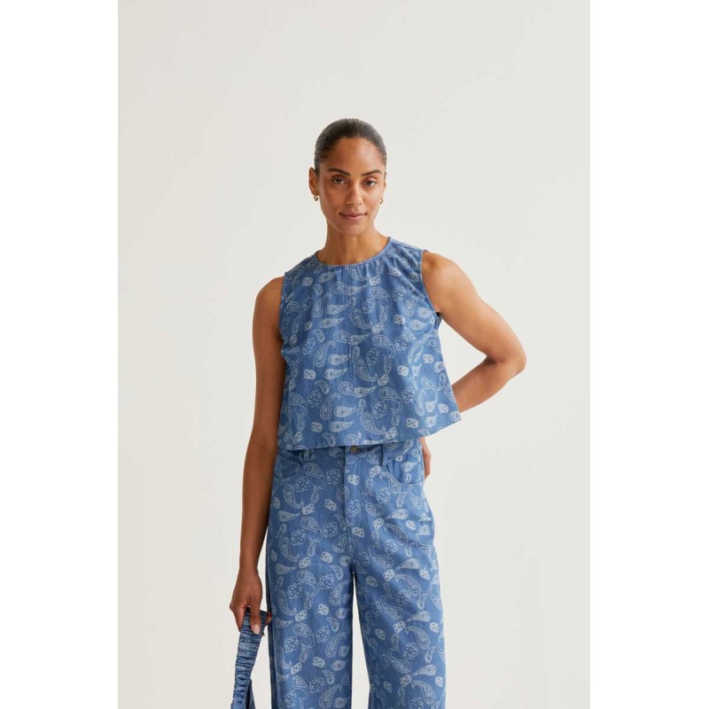 Top vaquero azul con estampado paisley.