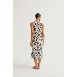 Vestido midi de tejido 100% algodón con estampado dalmatian. Cuello redondo y sin mangas. Cierre posterior con botón oculto. La modelo mide 173 cm y lleva la talla S.