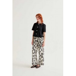 Top de tejido 100% algodón de color negro. Cuello redondo y manga corta ligeramente abullonada. Cierre frontal con botones ocultos con detalle de corazón. La modelo mide 175 cm y lleva la talla S.