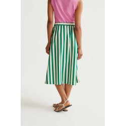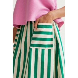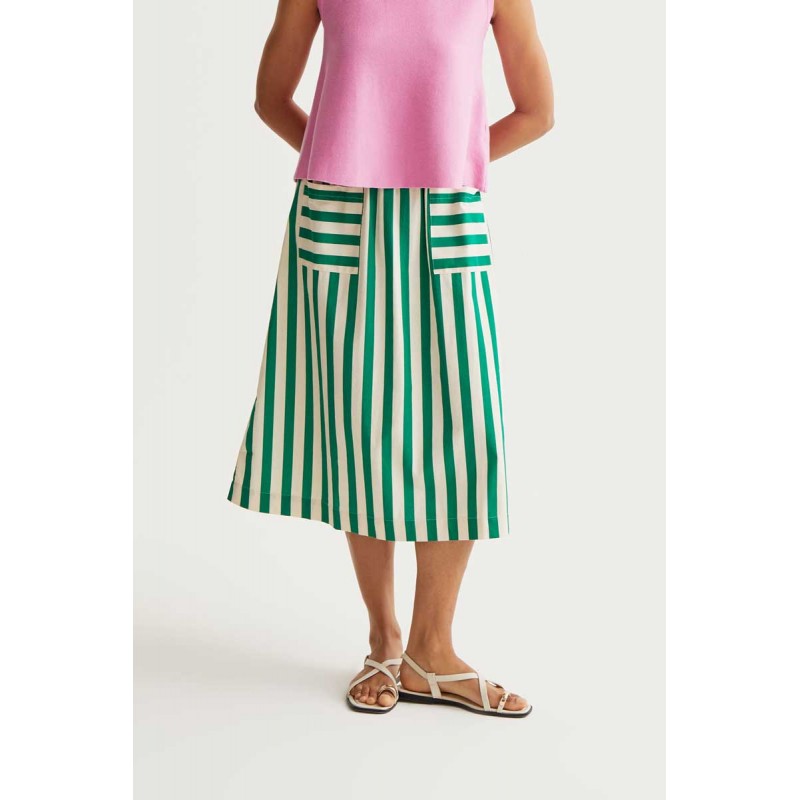 Falda midi de tejido 100% algodón con estampado bamboo green. Cintura fija elástica de tiro alto. Bolsillos frontales funcionales. Corte amplio. La modelo mide 173 cm y lleva la talla S.