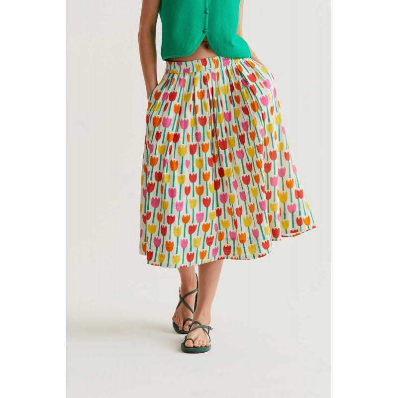 Falda midi con estampado de tulipanes.