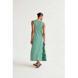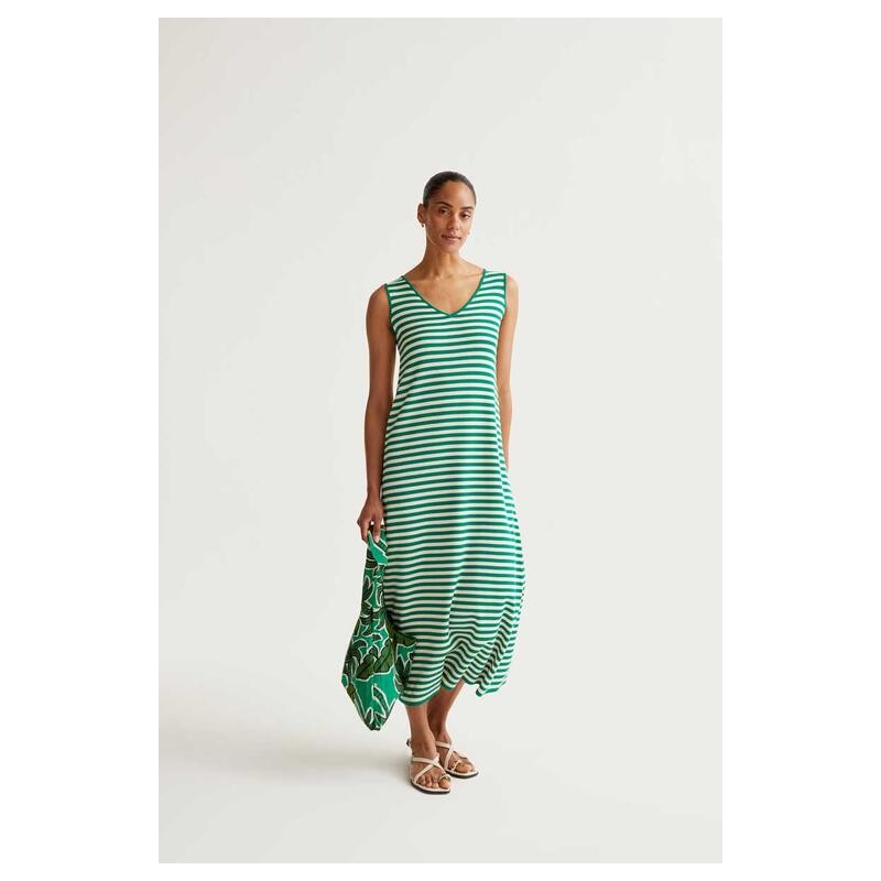 Vestido largo con tejido de punto estampado de rayas de color blanco y verde.