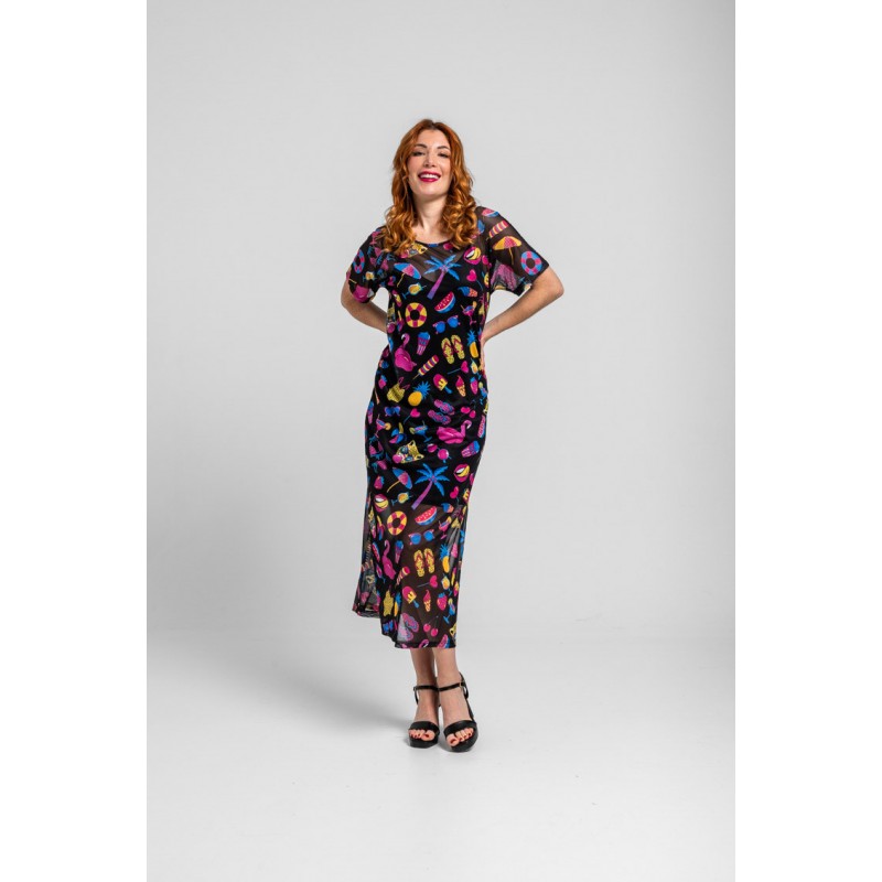 Vestido camiseta en tul elástico fluido.