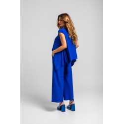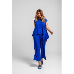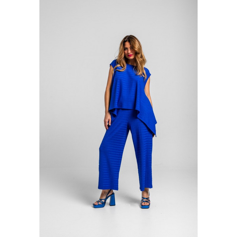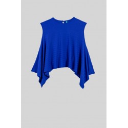 Blusa de corte ancho, con manga caída, escote redondo, bajo terminado en pico en los laterales y cierre en espalda con botón. - 95% Poliéster y 5% Elastán. - Lavar a máquina en agua fría. No usar blanqueador. No usar secadora. Secar colgado a la sombra. Planchado a temperatura baja, por debajo de 100 ºC. Planchar del revés. No dejar la plancha parada sobre la prenda. Lavar con colores similares.