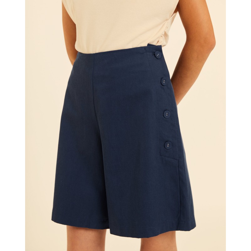 TRENCH CREMA 95,00 € Nuevo Culote con pinzas 69,90 € Nuevo Top Piña 27,90 € Nuevo Bermudas con botones azul.