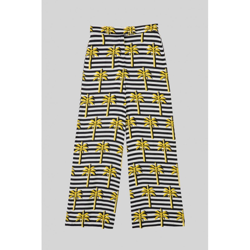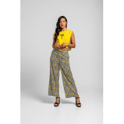 Pantalón de tiro alto con bolsillos delanteros, falsos bolsillos en espalda, pernera ancha y cierre frontal con cremallera, botón interior y gancho. - 100% Viscosa. - Lavar a máquina en agua fría en centrifugado corto. No usar blanqueador. No usar secadora. Secar colgado a la sombra. Planchado a temperatura baja, por debajo de 100 ºC. Planchar del revés. No dejar la plancha parada sobre la prenda. Lavar con colores similares.
