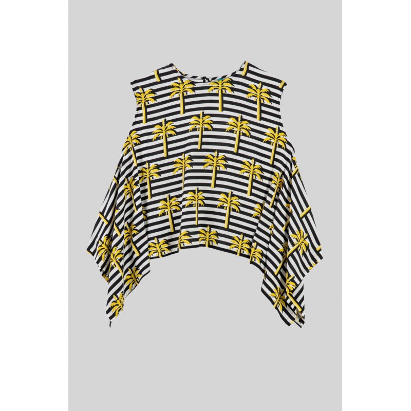 Blusa de corte ancho, con manga caída, escote redondo, bajo terminado en pico en los laterales y cierre en espalda con botón. - 100% Viscosa. - Lavar a máquina en agua fría en centrifugado corto. No usar blanqueador. No usar secadora. Secar colgado a la sombra. Planchado a temperatura baja, por debajo de 100 ºC. Planchar del revés. No dejar la plancha parada sobre la prenda. Lavar con colores similares.