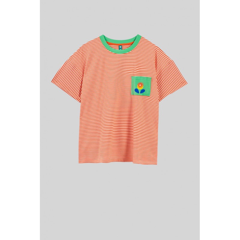 Camiseta de algodón de corte cuadrado, sisa caída, manga corta, posicional en el pecho y cortes laterales - 95% Algodón y 5% Elastán. - Lavar a máquina en agua fría. No usar blanqueador. No usar secadora. Secar colgado a la sombra. Planchado a temperatura baja, por debajo de 100 ºC. Planchar del revés. No dejar la plancha parada sobre la prenda. Lavar con colores similares.