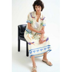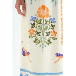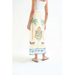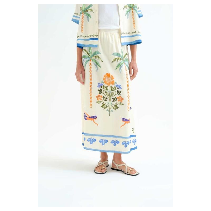 Falda larga de tejido crepé con estampado palm & mermaid.